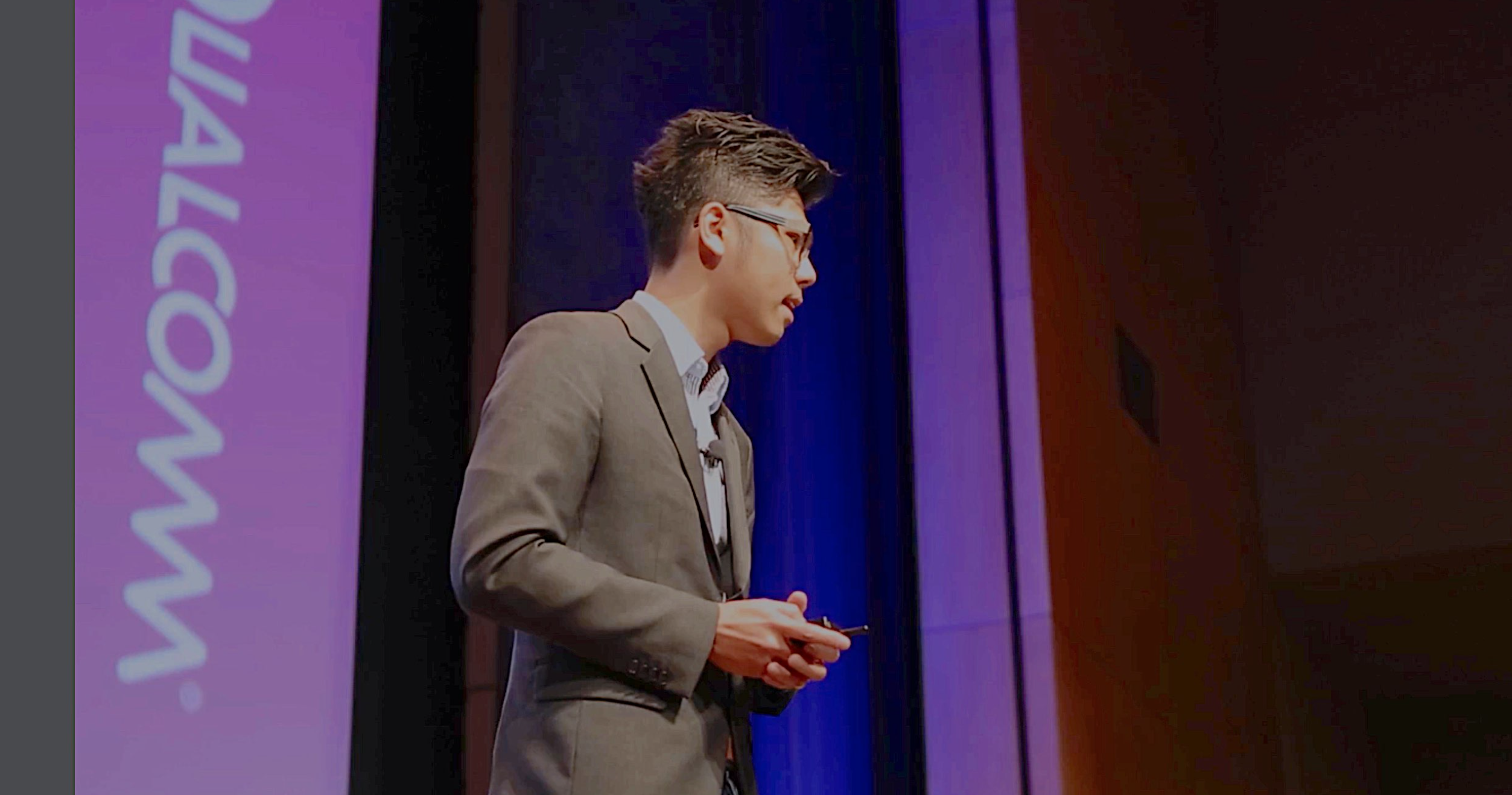 楊尚樺老師2016年於美國聖地牙哥高通總部Qualcomm Innovation Fellowship Competition(高通創新競賽)決賽現場分享超高速太赫茲無線通訊系統(ultra-high-data-rate terahertz wireless communication systems)