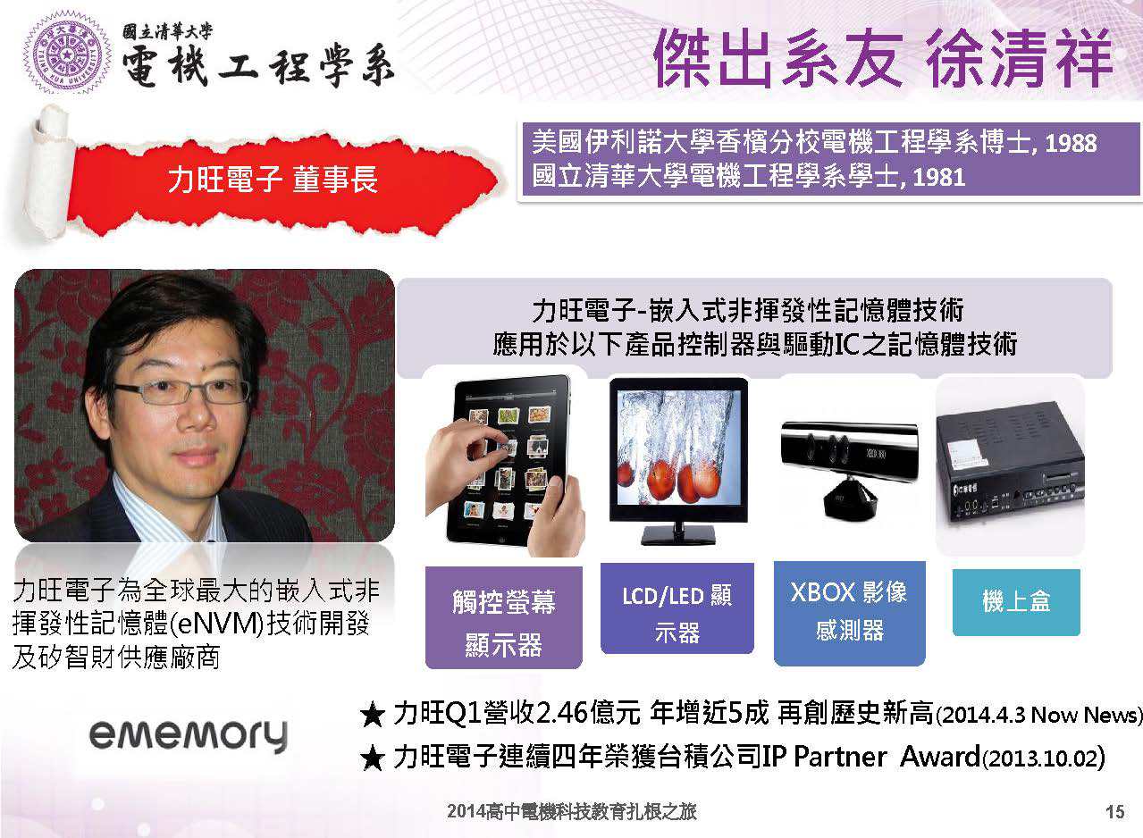 電機系92級、電機所98級 | 力旺電子股份有限公司 | 徐清祥 | 經歷 | |